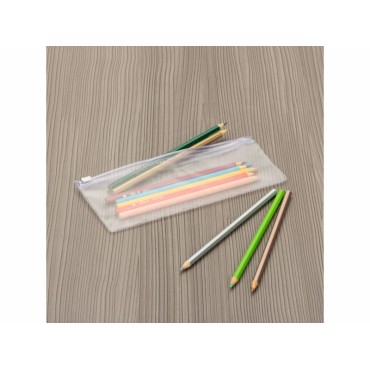 Estojo plástico zip zap, basta movimentar suporte branco para os lados para abrir/fechar.Medidas aproximadas para gravação (CxL): 6,8 cm x 21,5 cmTamanho total aproximado (CxL): 8,2 ..