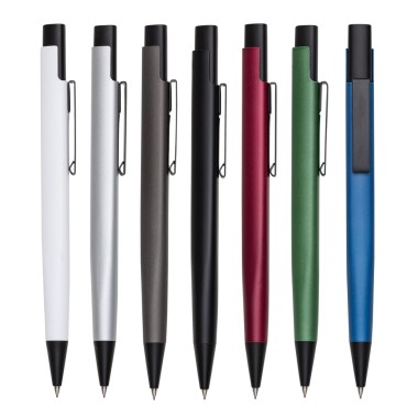 Lapiseira metal inteira colorida com detalhes prata. Clip metal com a ponta do acionador na cor da peça, parte inferior com dois anéis prata. Aciona por clique.Altura : 13,7 cmLargura : 1,..
